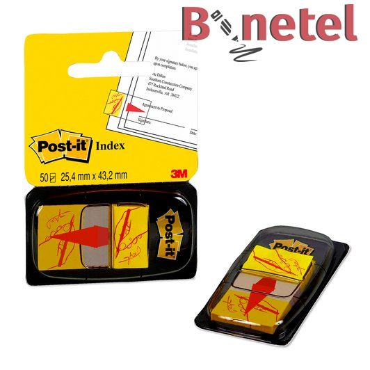 Post-it indeksne strelice pomažu u usmeravanju pažnje na odredjena područja na papirologiji. Uklonjivi post-it vam omogućava da dodajete i uklanjate indeksne strelice bez ostavljanja tragova. Koristite ih na fakturama, ugovorima, pravnim obrascima i drugim dokumentima kako biste kupcima i klijentima pokazali tačno gde da potpišu, uz jasnu strelicu i tekst "Potpiši ovde". Ovo pakovanje sadrži 50 žutih indeksnih strelica dimenzije 25mm i dolazi sa praktičnim dozatorom koje se otvara.
