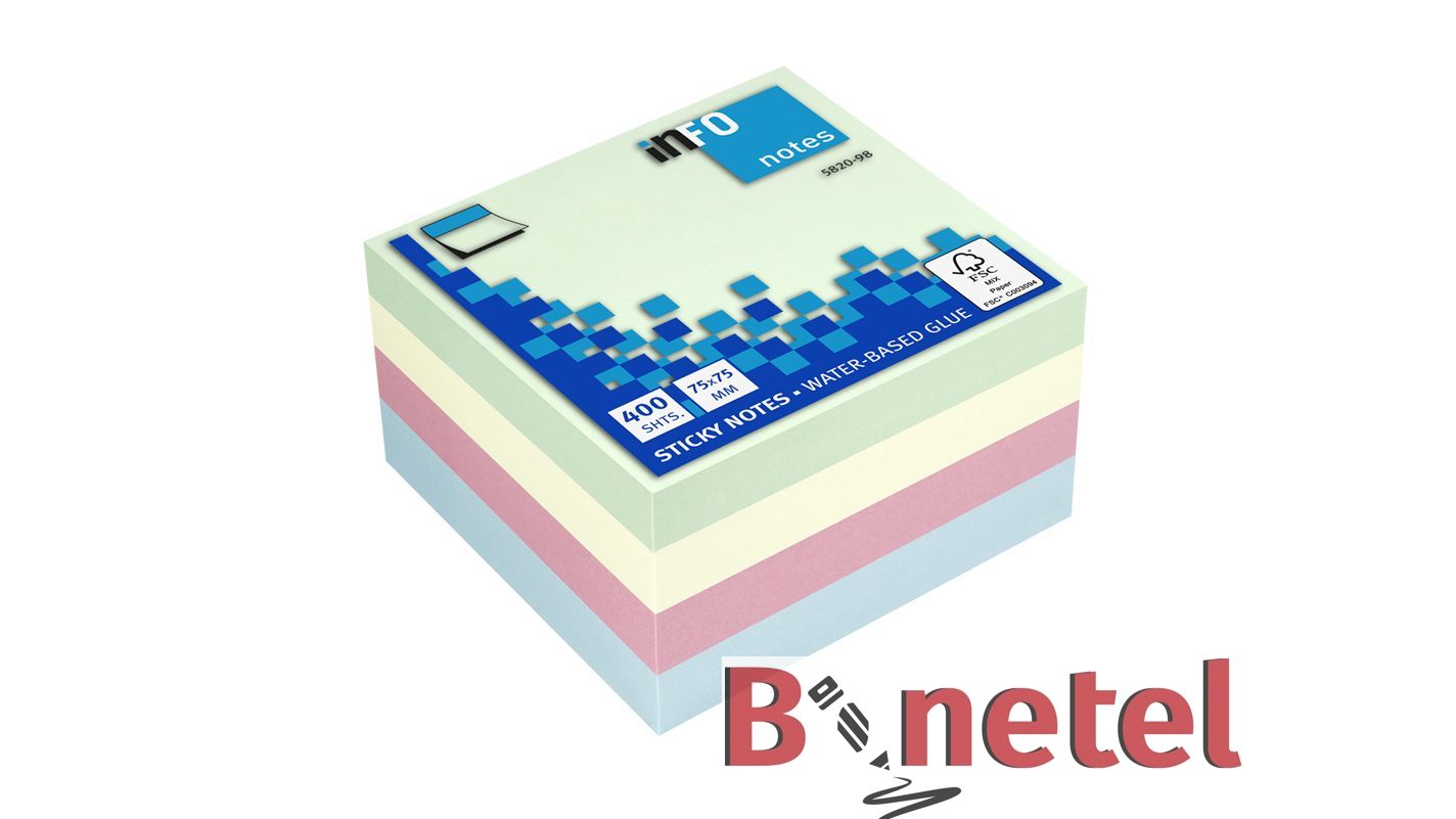 "Pastelna" kocka dostupna sa 4 pastelne boje. Svaka pastelna boja sadrži 100 listića. Savršeno su rešenje za beleženje važnih informacija ili kreativnih ideja. Dimenzije 75x75mm, praktične su i svestrane. Možete ih odlepiti bez ostavljanja tragova čak i sa osetljivih površina.