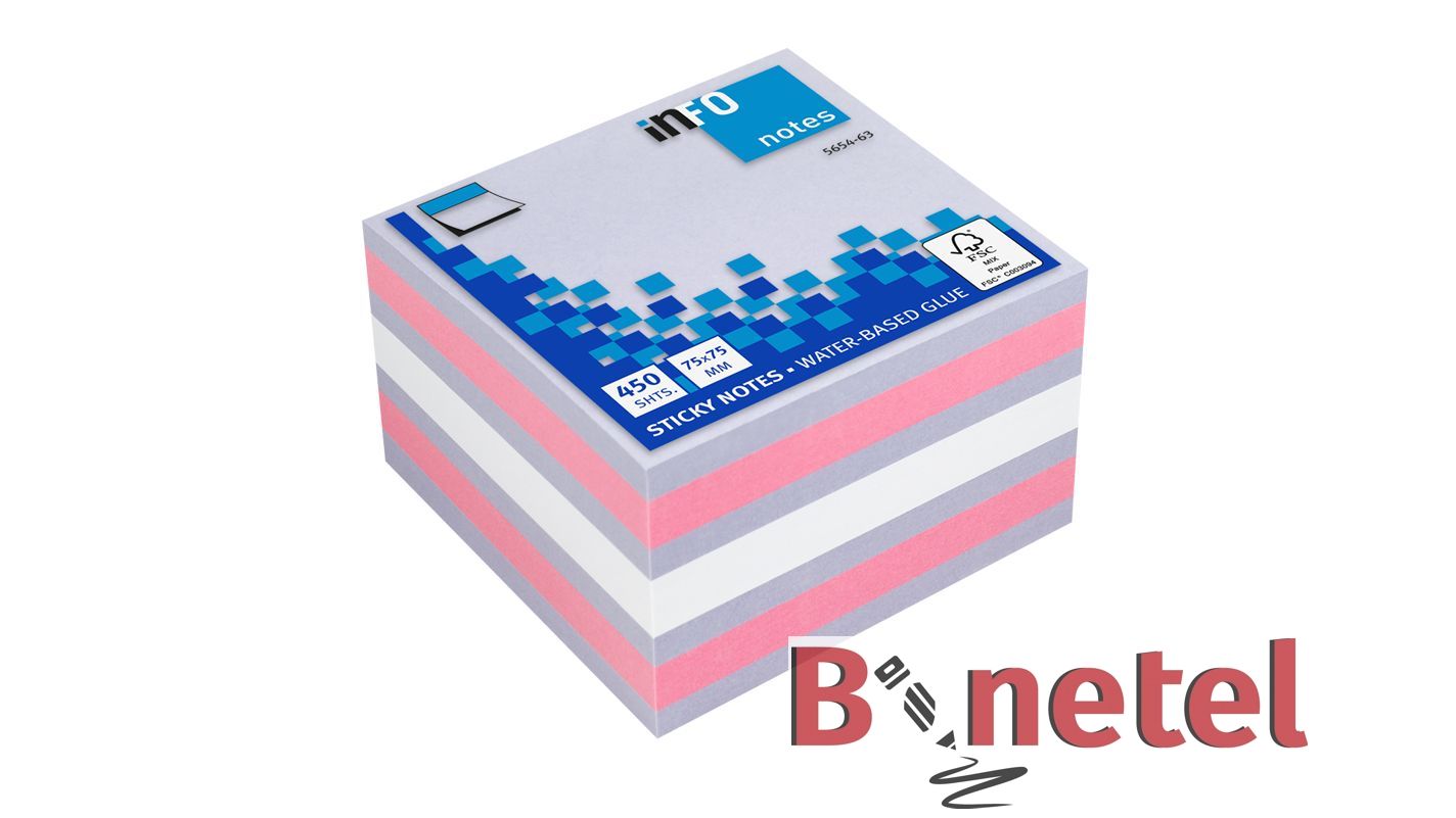 "Violet mix" kocka dostupna u mixu 2 boje i belom. Savršeno rešenje za beleženje važnih informacija ili kreativnih ideja. Dimenzije 75x75mm, praktične su i svestrane. Možete ih odlepiti bez ostavljanja tragova čak i sa osetljivih površina.