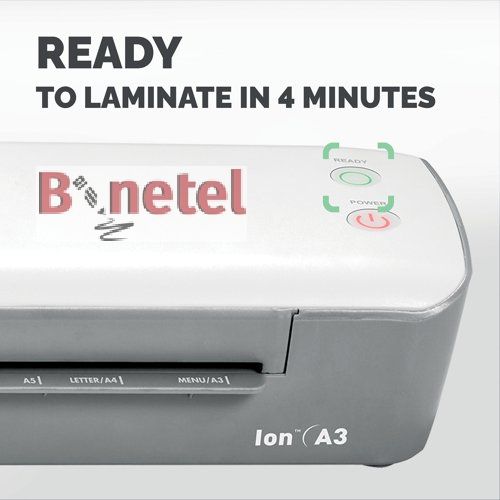 Laminator Fellowes ION ima univerzalni temperaturni režim za laminiranje A3 dokumenata u folijama debljine 80-125 mycrona. ION A3 laminatro je veoma jednostavan za podešavanje - kontroliše se pomoću samo jednog tastera ON/OFF. Zeleno svetlo će pokazati da je uredjaj sprema na upotrebu samo 4 minuta nakon uključivanja. Telo laminatora se ne pregreva i apsolutno je bezbedno na dodir.