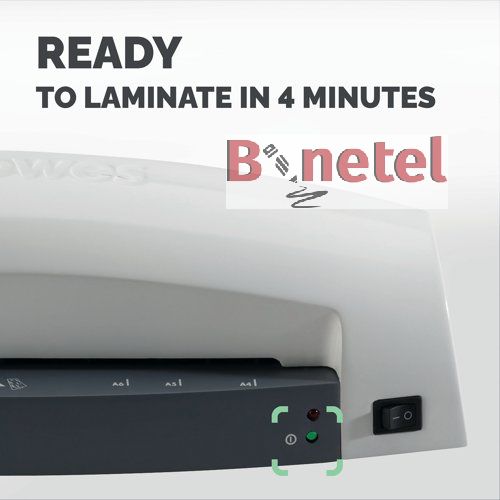 Laminator Lunar + A4 je dizajniran za rad sa folijama od 80 i 125 mikrona. Maksimalan format dokumenta je A4. Laminator je jednostavan za rad i ne zahteva dodatna podešavanja. Signal zelenog svetla pokazuje da je spreman za rad 4 minute nakon uključivanja.