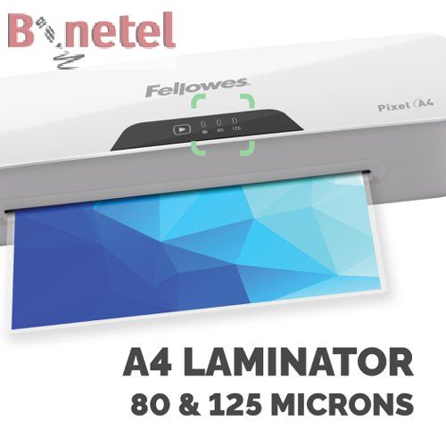 Laminator Fellowes Pixel A4 dizajniran je za upotrebu u maloj kancelariji ili kući. Novi proizvod ima 3 temperaturna režima za folije od 75/80 mycrona, 125 mycrona i za hladnu laminaciju. Folije od 100 mycrona može se laminirati korišćenjem režima od 125 mycrona.
