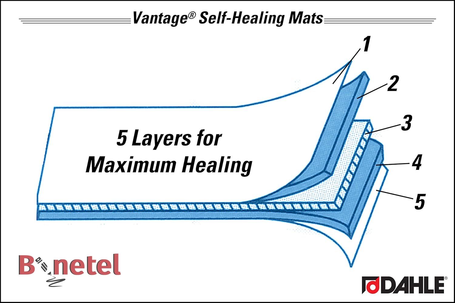 - 5-slojna konstrukcija sa jezgrom otpornim na rezanje i samozatvarajućom površinom za rezanje.