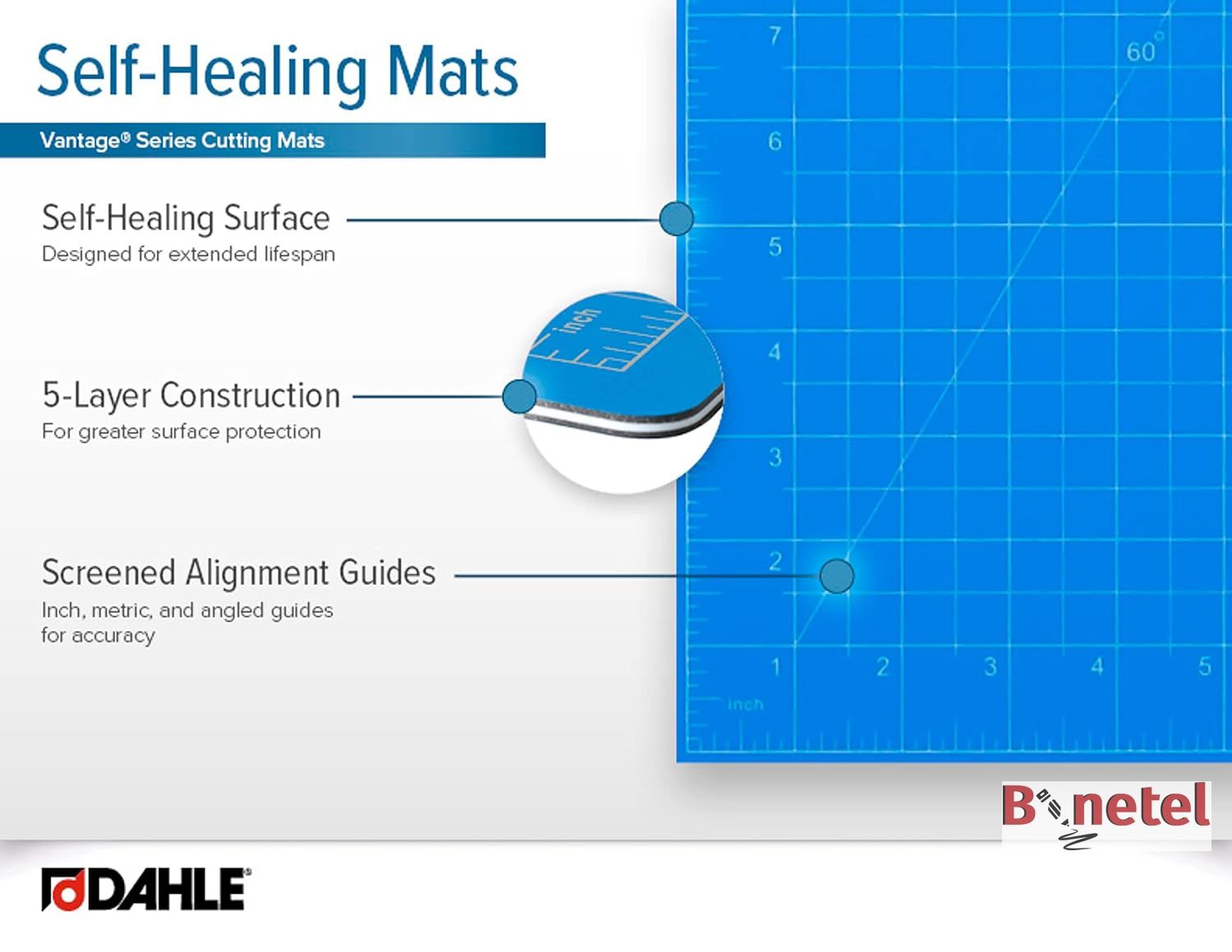 - Samoobnavljajuća površina sa jasnim linijama za sečenje.