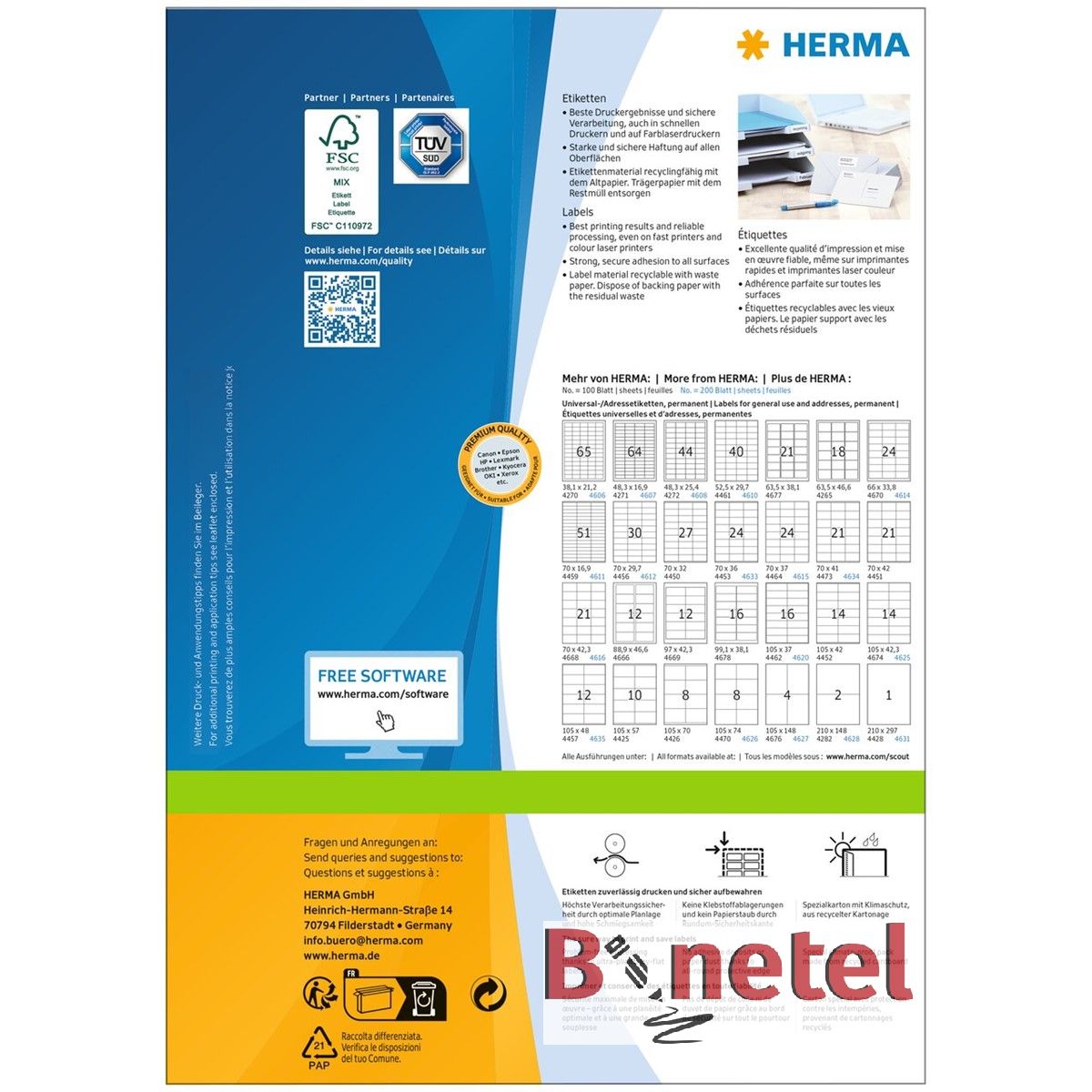 Etikete 38,1 x 21,2mm , A4/65, 1/100, bela Herma 4270(Universal PREMIUM labels)