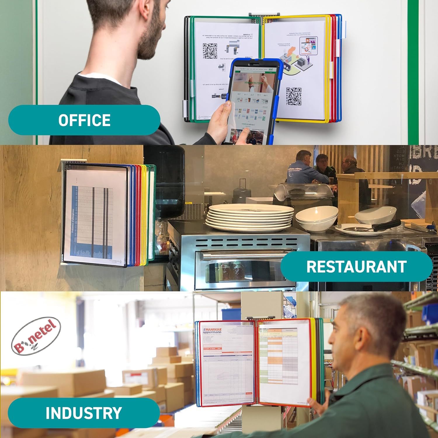 - Zidni nosač napravljen od čelika sa 10 raznobijnih ramova A4 formata.