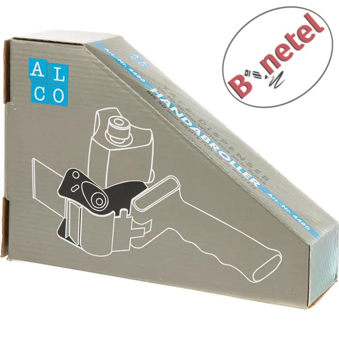 Sa apartom za pakovanje Alco 4480 možete bez napora koristiti selotejp trake veličine do 50mm x 66m. Zahvaljujući čvrstom i metalnom kućištu i plastičnoj dršci, lako rukovanje je zagarantovano. Aparat ima podevisu valjkastu kočnicu koja omogućava precizno doziranje. Siva boja mu daje moderan i profesionalni izgled. Zahvaljujući nazubljenoj nožu za kidanje, možete čisto i brzo otkunuti traku za pakovanje.